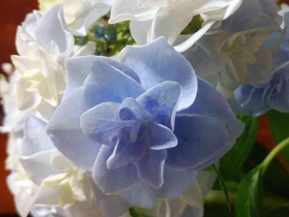 紫陽花は、花びらがかわいいものをたくさん壺にいけました。