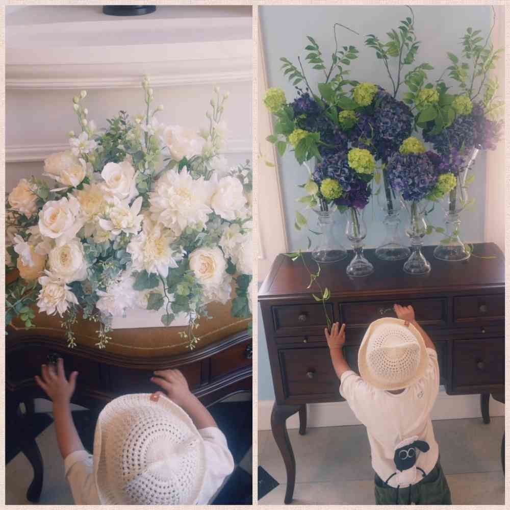 お花にとっても触りたそうと思いきや、引き出しに夢中でした笑笑