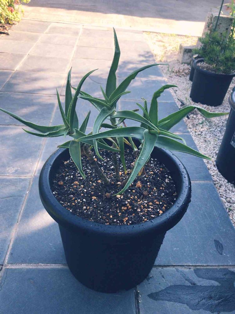 アロエ(ストリアツラ)の株立ち植替え。風車みたいで正面から見るとカッコイイ