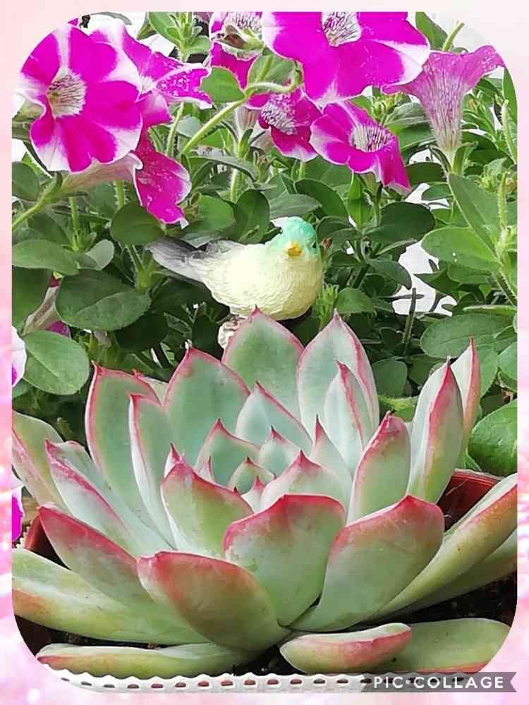 ピンクのペチュニアと🐧さんも可愛い❤️