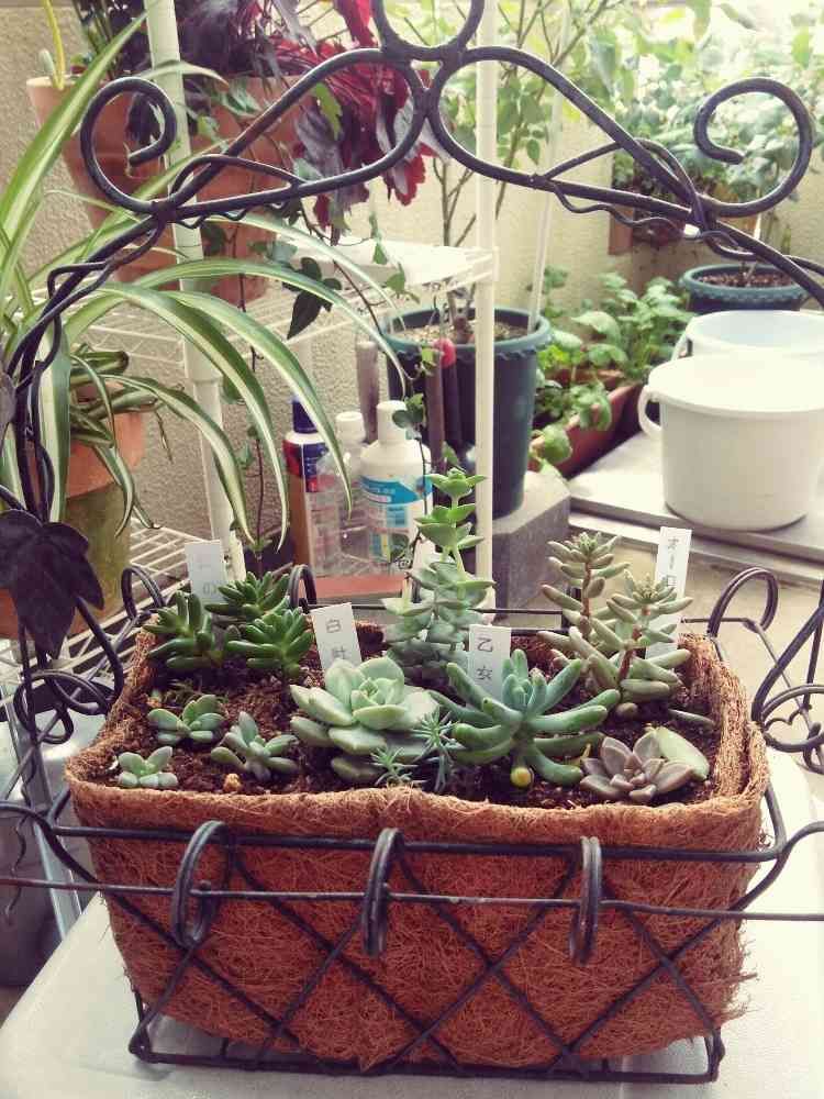 さん、このかごは今は亡き伯母のお古なんですが、大きさが中途半端でイマイチ使い途に迷っていました。DAISOでフラワーコンテナ(ラグビーボール状の形)のヤシガラマットを買ってきて、適当にハサミを入れて何とか収まりました(笑)