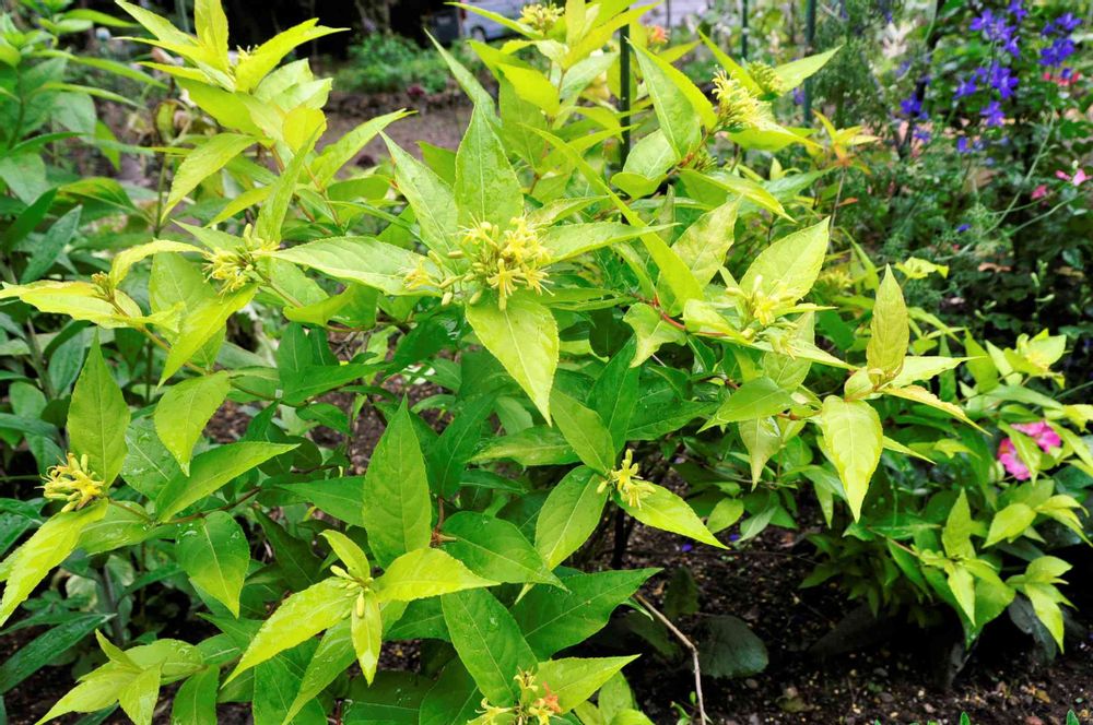 ライムグリーンが爽やかなディエルビラ・ハニービー、カラーリーフガーデンには欠かせない存在です。