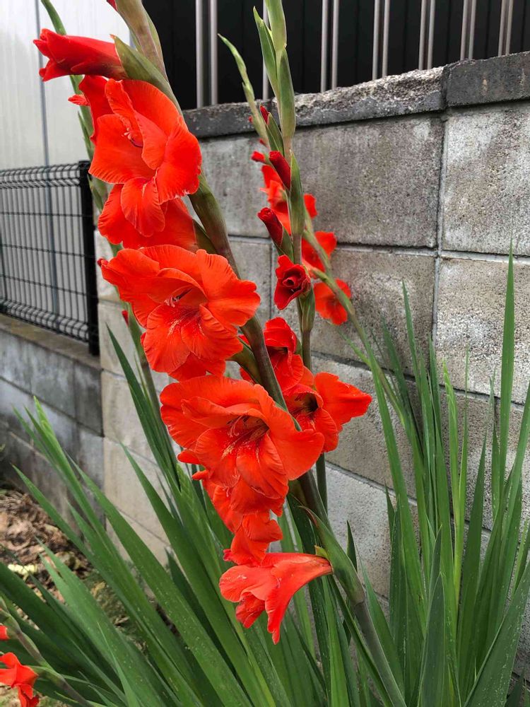 グラジオラスが畑の隅に沢山咲いております。うちのはオレンジばかり多いですね。夏っぽい植物です。