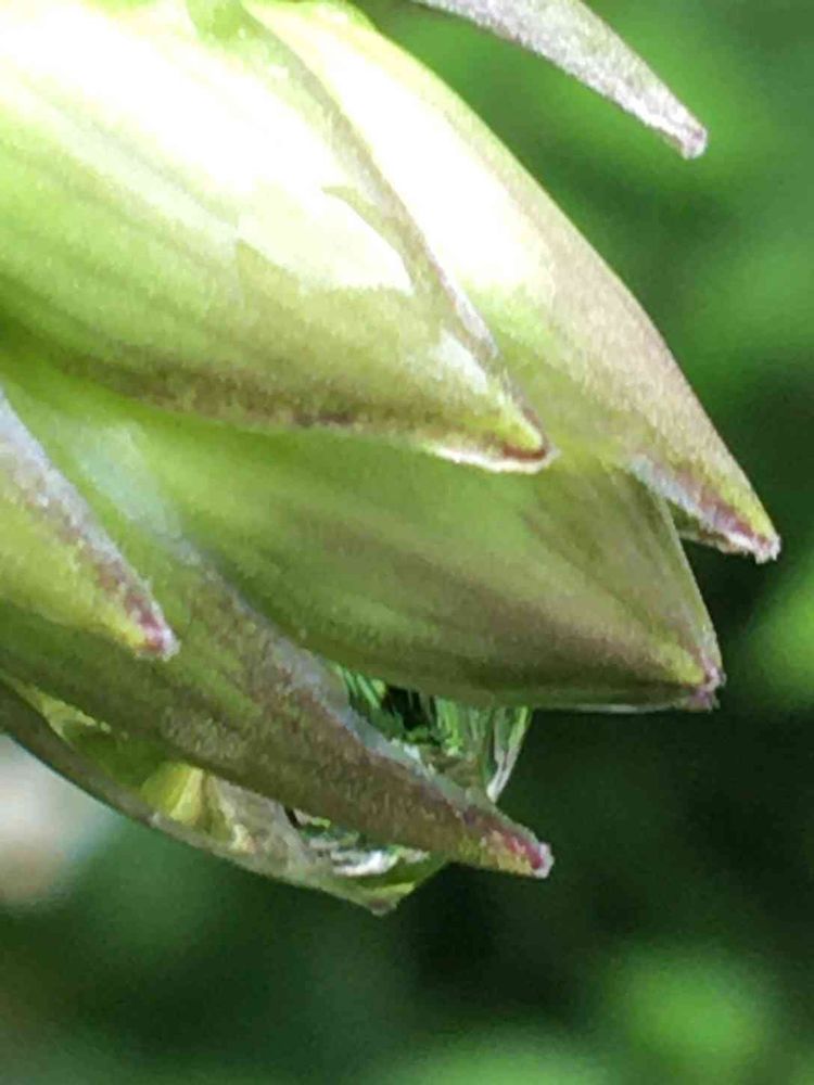 夜中降った雨☔️が上がり、裏庭のギボウシを見に行ったら、まだ咲いてなかったのですが、蕾の先端の滴💧がとてもきれいだったのです。