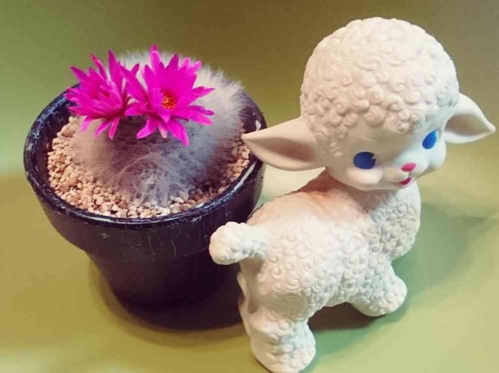白い毛で覆われ、鮮やかな小さいお花が咲いてて贅沢な🌵ですね。