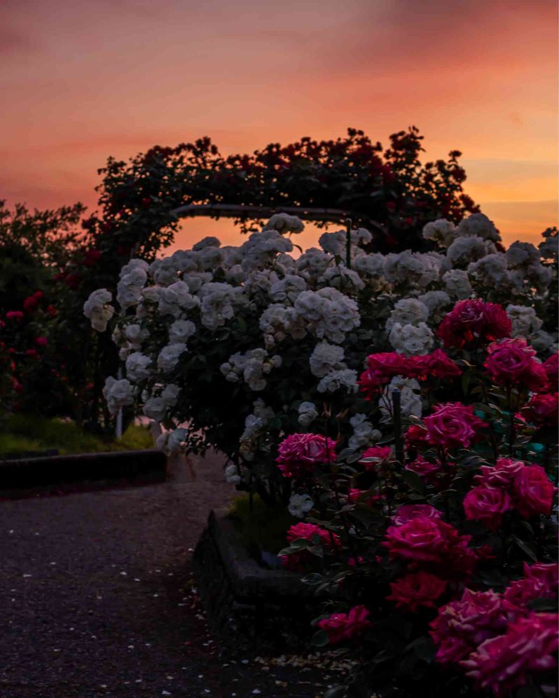 あかね色に染まるバラ園✨