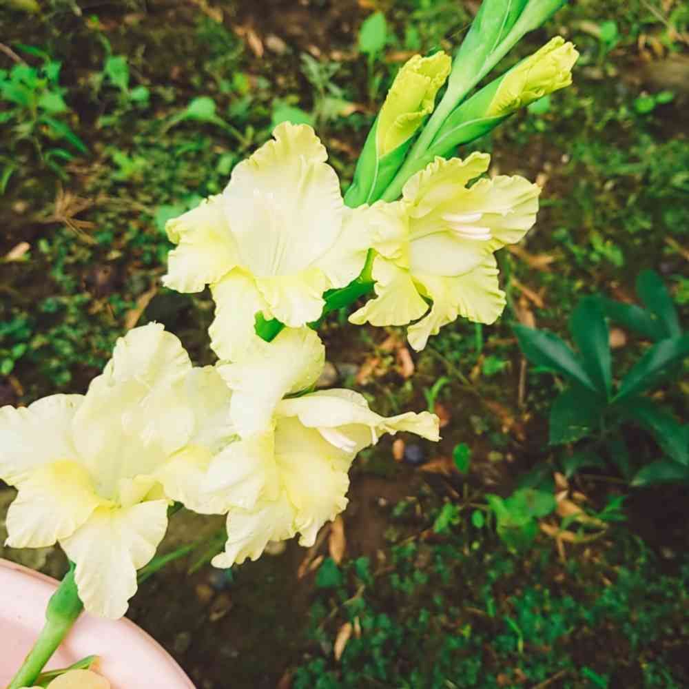 グラジオラス 薄いグリーンがかった色が涼しげです🌸