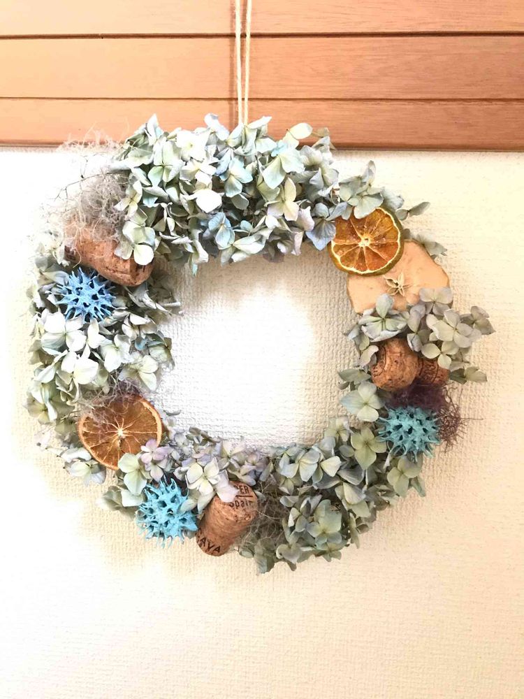 紫陽花と🍊のリース、ステキですね~✨🥰