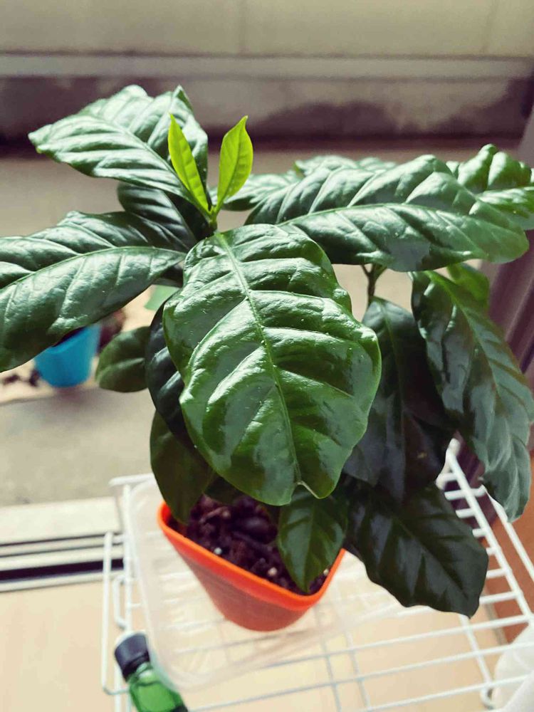 2020年5月に迎えたコーヒーノキ。こうやって新しい葉っぱが出てくるんだな〜と😭かわいいです。