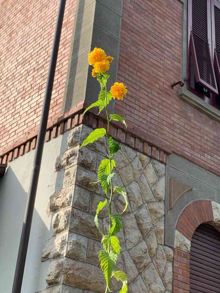 日本原産の八重ヤマブキがイタリアに咲いてるんですねぇ~ 時期的に遅咲きなのかな?