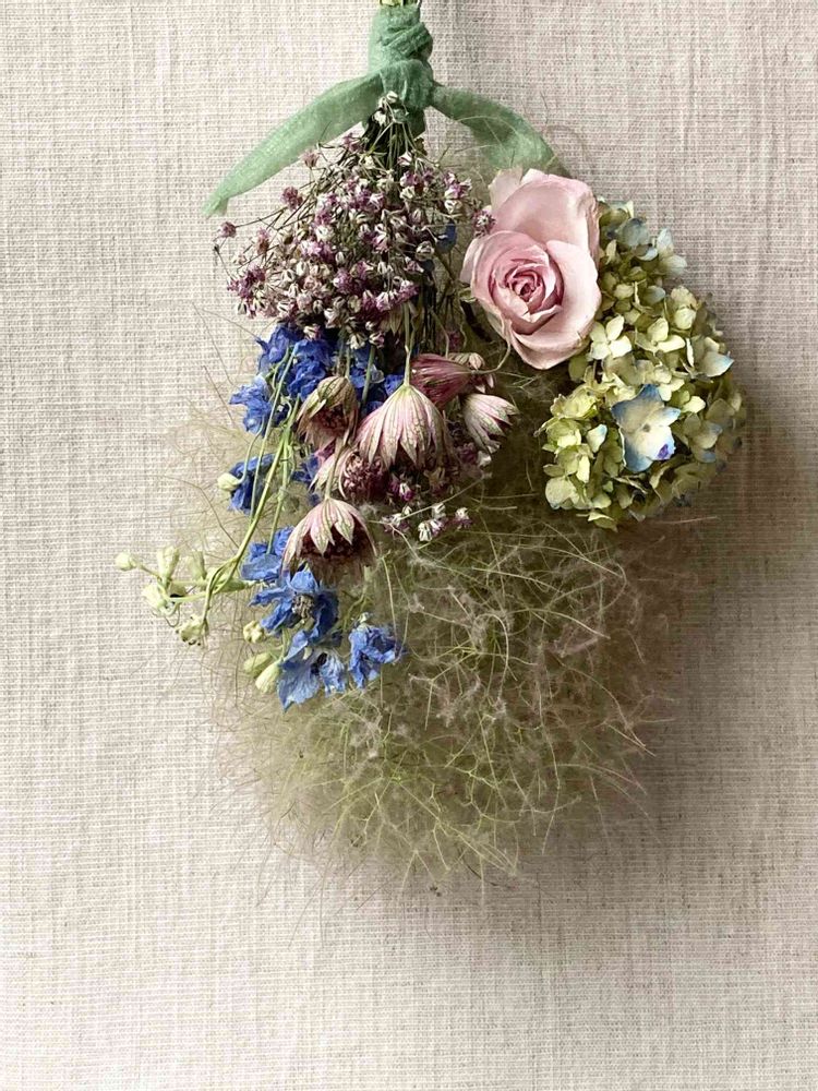 Part.1がダラダラと長くなってしまったので、2025年の作品からは新しくこちらにまとめ、随時更新していきます。 基本的に花材を購入することはなく、お庭で育てたお花や、切り花としてしばらく飾って楽しんでいたお花を再利用する形で作っています。フレッシュからドライになっていく過程を楽しんでいます。 2009年頃からプリザーブドフラワーのレッスンに通い、2014年にプリザーブドフラワーの講師資格はとったので(年会費が高いので既に退会)アレンジの基礎はそこで学びましたが、生花やドライフラワーの扱いは独学です。 その後、生きている植物の魅力に魅せられてしまい、今ではプリザは一切作っていません。 Part.1にも作品を載せていますので、よかったらそちらもごらんください。