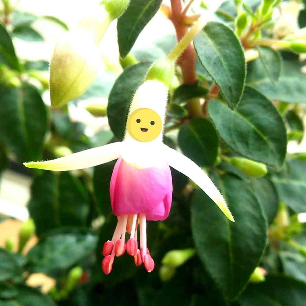 (フクシア)サン を見る度に、顔があったら面白いなぁと思っていたので、とうとう実際に付けちゃいまいました!😁