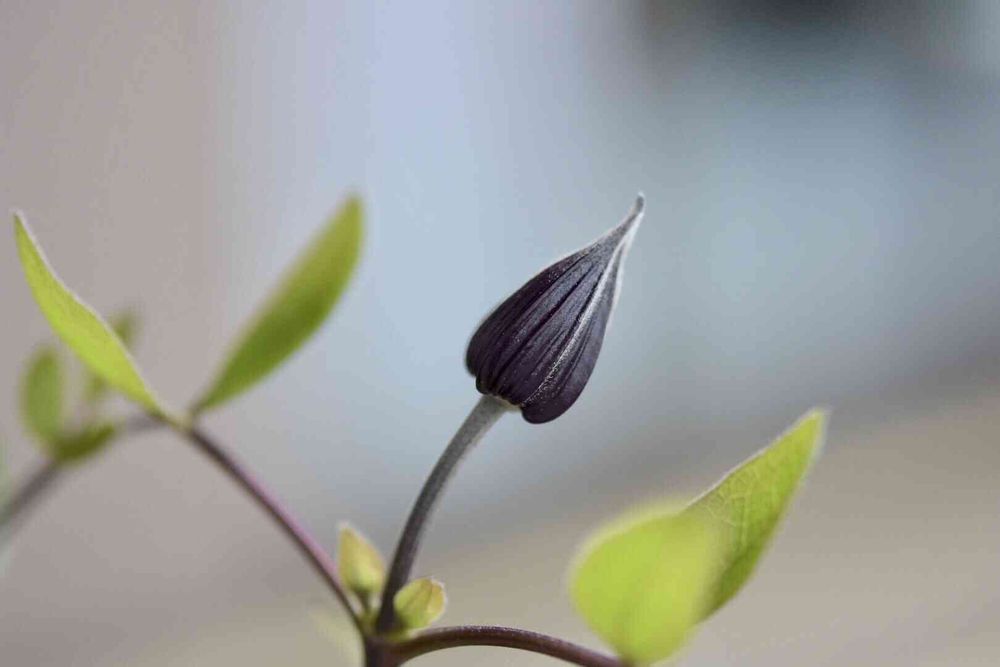 ぐんぐんツルが伸びた先っぽで、ツンと上向きに蕾んでいますよ。咲く頃にはうつむくかな?