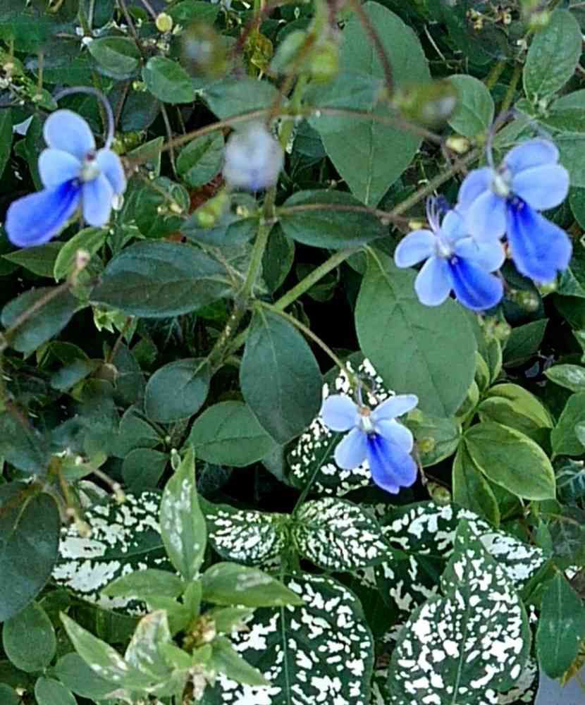 園芸名では「ブルーエルフィン」と呼ばれ、青い花に、雌しべと雄しべが蝶のように見えます💙