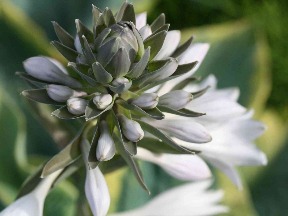 ホスタの花とつぼみが芸術的な形。