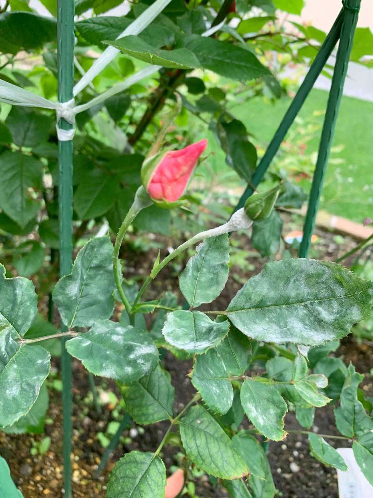 華やかなイングリッドバーグマンに隠れてあまり見ていなかった5月の新人オールドローズラフランス、うどんこ病?で悲惨な姿に😧sorry😭
