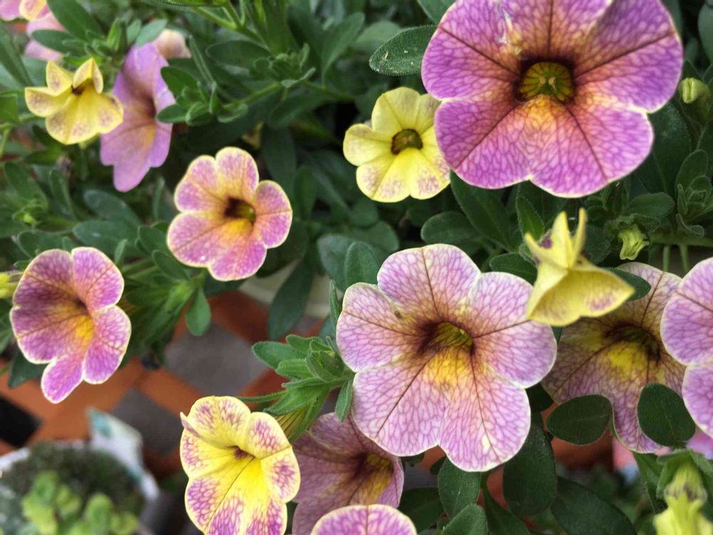 カリブラコアカメレオン ブルーベリースコーン。なんて美味しそうな名前😍😍😍だいぶ咲いてきました✨✨✨