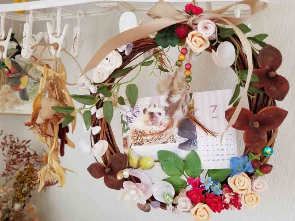 貝殻まで付いていて、見ていて楽しいリースですね😃