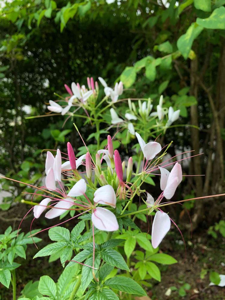 小さな庭,花のある暮らし,クレオメ白・ピンクの投稿画像