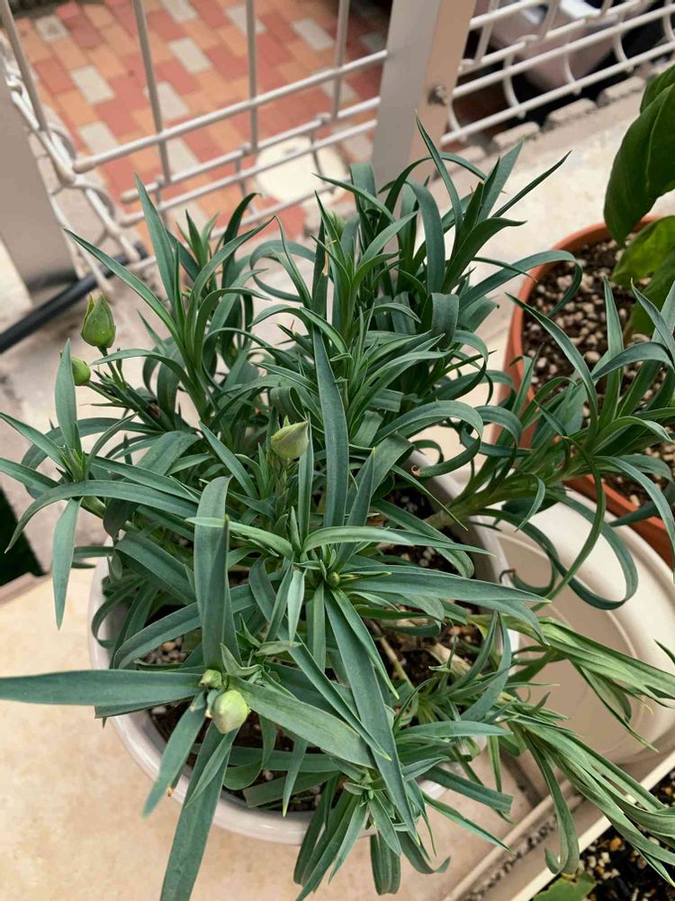 一度死にかけたカーネーション、切り戻してみて、以前アドバイスいただいたように日当たりの良い場所に置いていたらまた花芽が出てきた…!!