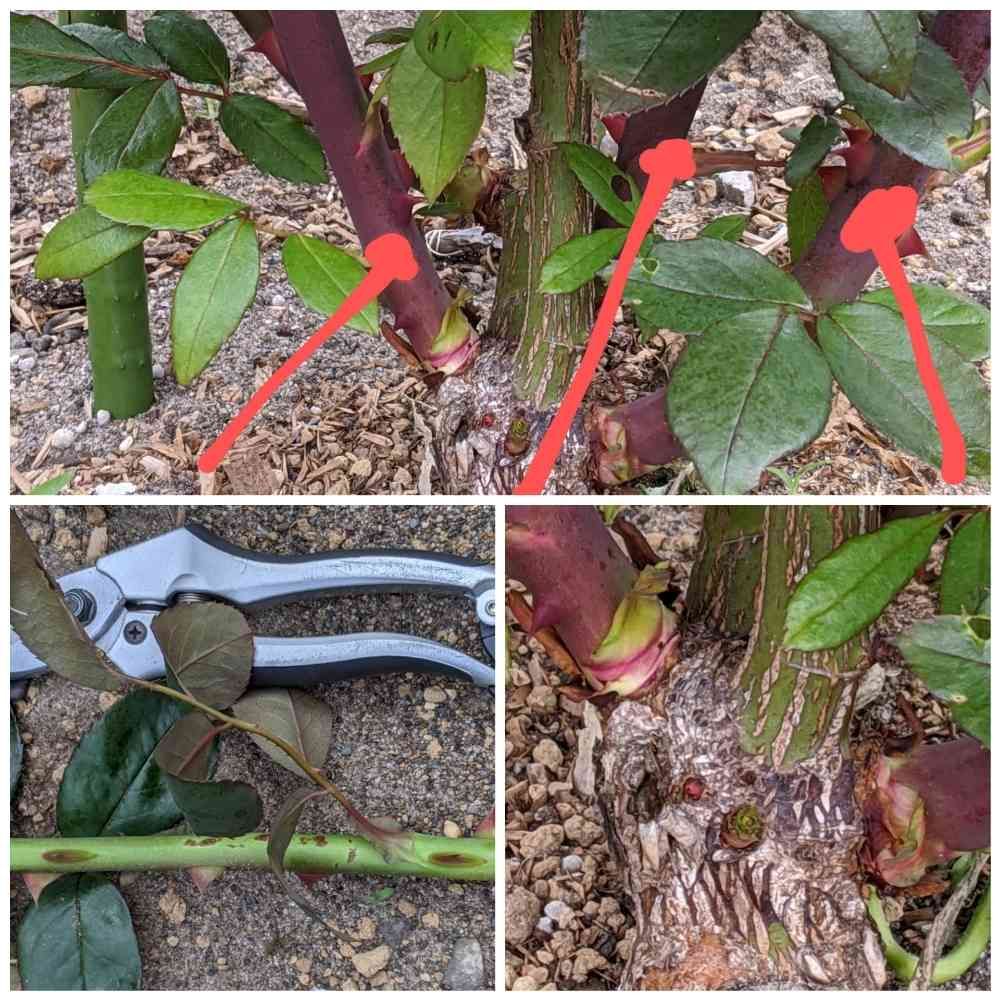地植えのメルヘンケーニギンの恐ろしく太いシュート😱全部で4本あるんだけど、主枝と同じ太さで更に株元に新たなシュートの芽が見える。ピンチをしたのに勢いが分散される気配なく、このままでは大変なことになると考えて、改めてシュートをカット✂これで下の位置から新芽が出るから少しは背丈抑えられるはず🤔カットしたシュートはまるでタケノコ!ネマガリダケのよう😅こんなに巨大化するバラとは知らなかった💦
