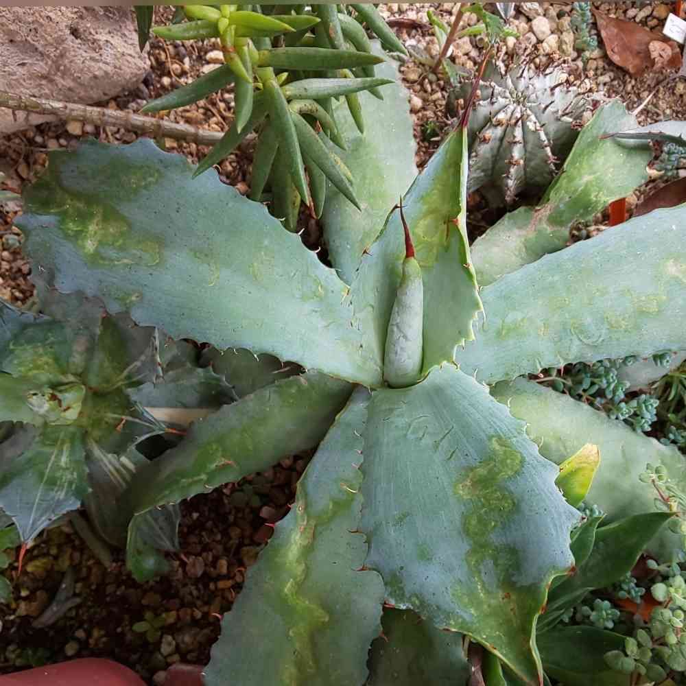 横の斑入りアガベまで同じようになってきた💦