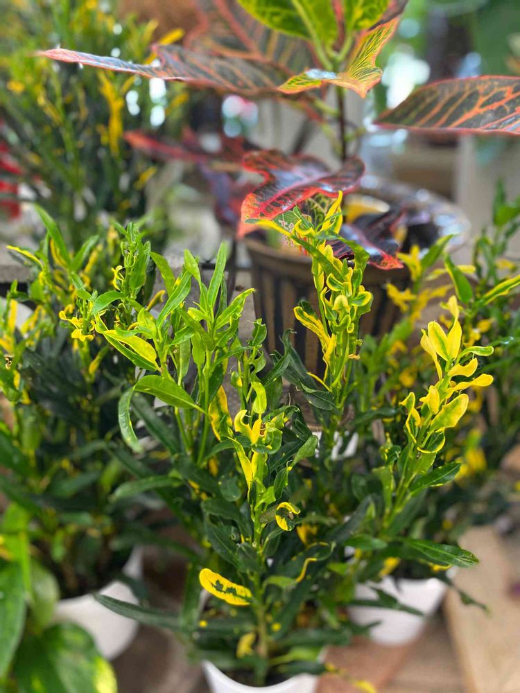 クルトン 黄ラセン今年も入荷しました😀風水では、金運アップの観葉植物でとても人気がありますね🤗電磁波が出るテレビやpcの近くにおくといいらしいです😃早速、レジわきにかざりました😁お客さん来ますように‼️