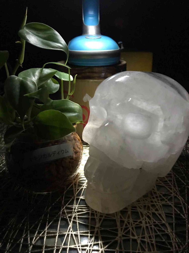 クリスタルスカル💀とハイドロカルチャーオキシカルデイウムの2ショット(^^)実は私植物も大好き❤天然石も大好き❤で是非、皆様に見て頂きたいのですが、写真が悪くて、申し訳ありません!