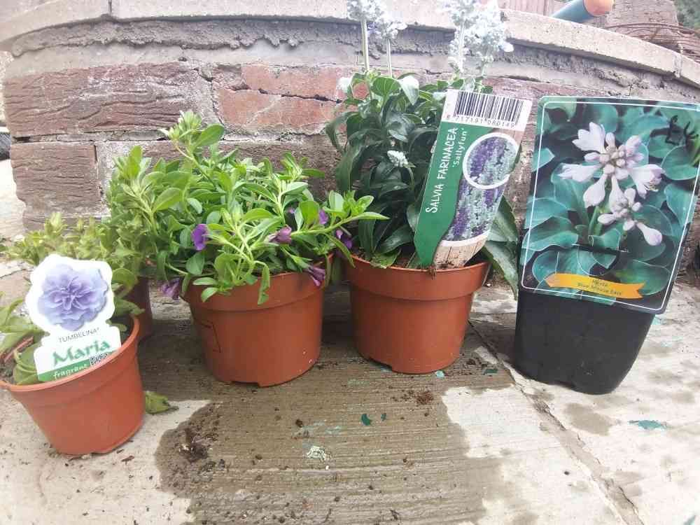 今皆さんがよくアップされていて気になっていたギボウシを発見❣それに八重のペチュニア❣さらにうちにあるのと違う種類のサルビア❣全て紫💜