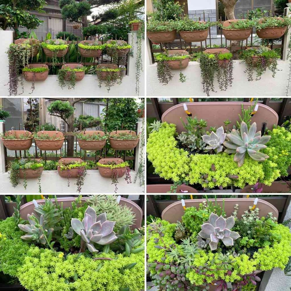 我家のフェンスにはダイソーさんで買った壁掛け鉢に多肉とセダムの寄植えを置いてます。