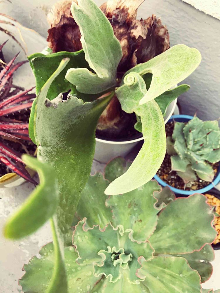 冬場に0度近辺まで外管理みたく極端な環境に置きすぎたからか、今年の胞子葉は巻いたり分岐しなかったりで、葉が肉厚で弱ってないものの、ちょっと変わってます。