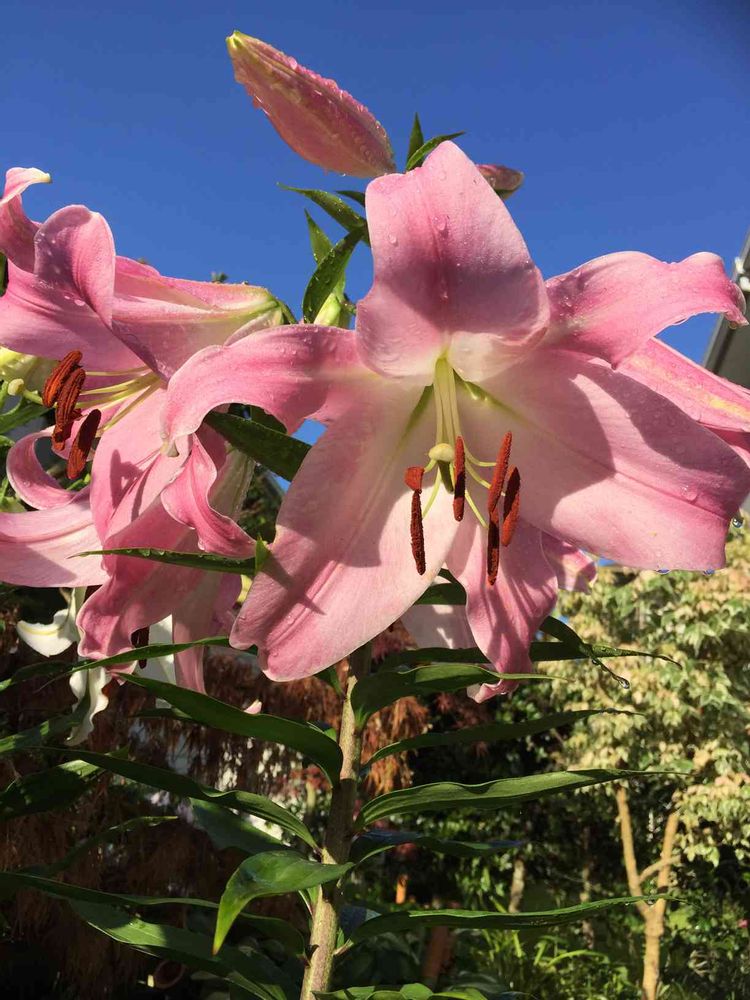 ☀️久しぶりの💙青空に💖大輪の百合の花が✨映えます✨(o^^o)