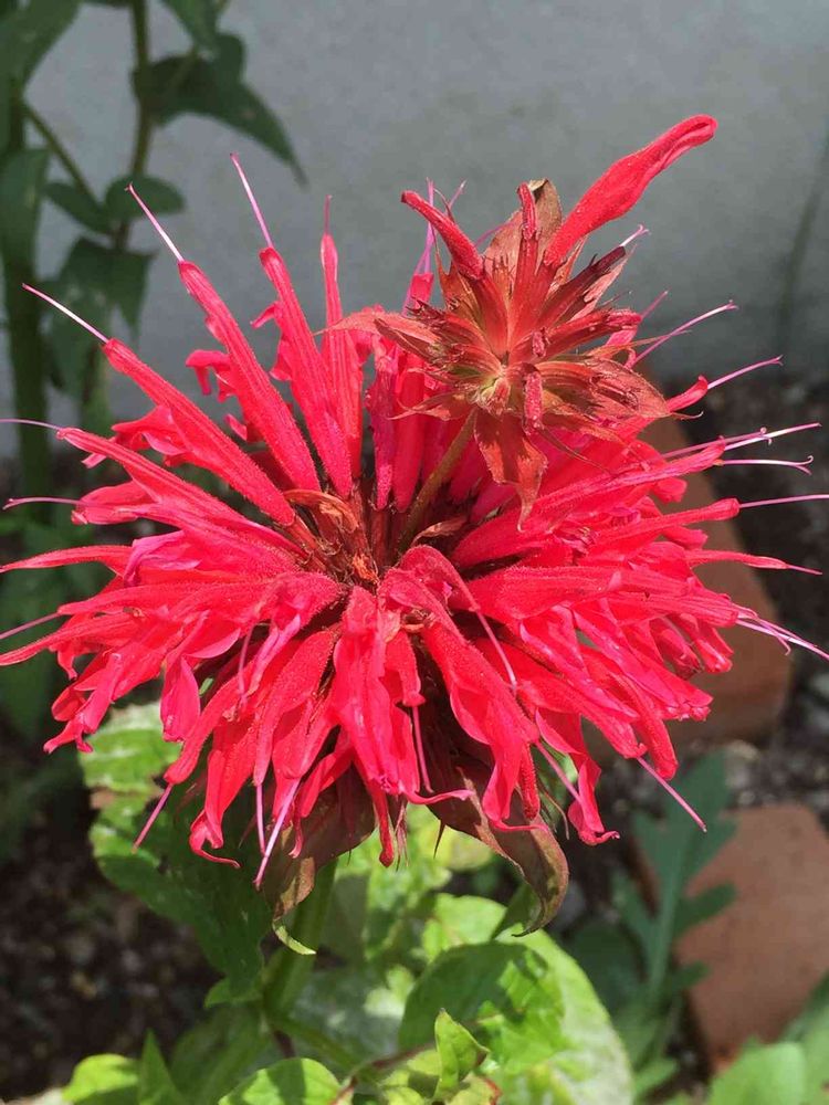 初めて見たけど豪華なお花ですね。花名前はモナルダディディマレッド!凄い長い名前デスネ! 真っ赤で綺麗お花ですね♪
