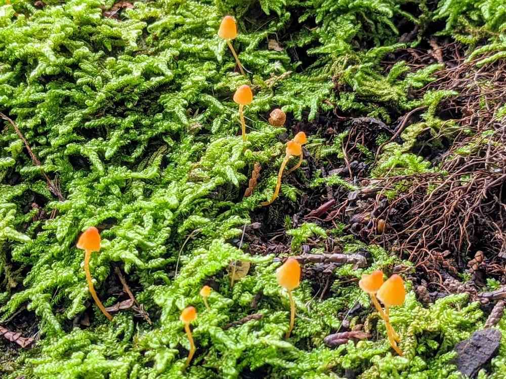 緑色の苔💚とオレンジ色の小さなキノコちゃん🍄