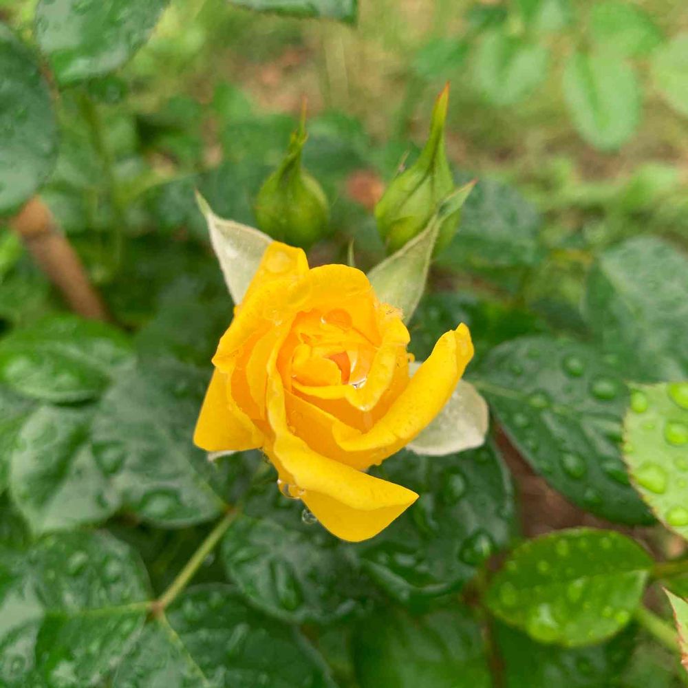 ファーストインプレッションは二番花が咲きました。雨に映えますね。
