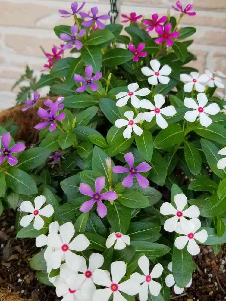 だいぶ成長して、花殻摘みは、円ハンギングを、揺らして、落ちてしまった花殻取り除いてます。