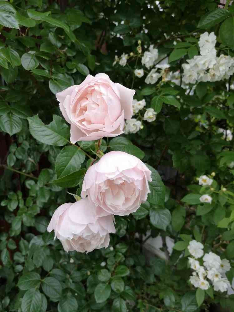 ザ・ジェネラス・ガーデナー柔らかい色が気に入ってます。ランブリング・レクターとクレマチスのロウグチをコラボさせていますがコンテストには間に合いませんでした。ザンネン😅