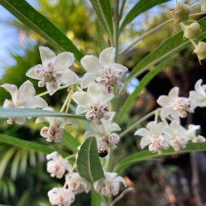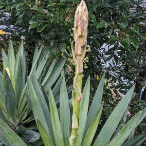 近所の植栽です。大型で、葉の長さは1〜1.5mぐらいあります。秋〜冬にかけてスズランのような花を咲かせています。 ご存知の方がいたら、教えてください、