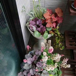 ヒューケラの寄せ植え💜💛💚❤ 下⬇ 去年の春の作成 上⬆ 今年の春作成 20210518📷