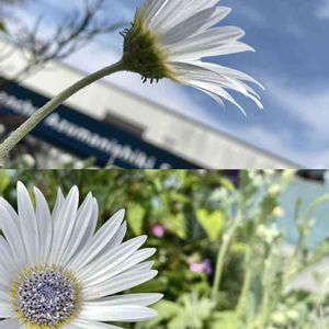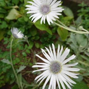 「食と緑の空中庭園」 アークトチス 真ん中のシベの部分が紫色ですごく美しい〜😍シルバーリーフに白い花弁もかっこいい✨