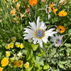 “アークトチス他” 1枚目…“アークトチス”迎えた時は蕾しかなかったけど咲いてくれました。 想像以上にお気に入り確定の花でした。🙆 2枚目…こちらも今年から新顔の “エキナセアのミニベル” これまた良いじゃ~ん☺️ 3枚目…数年前に花をメル⚪リで買っておまけに貰った“マツバギク” 毎年咲いてます😊 4枚目…増やすのが楽しくてこうなりました。“ソテツキリン” 里親募集中です😅 5枚目…自分そのもの😓 買おうかなぁ😁