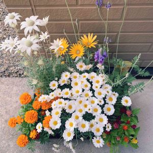 寄せ植え💐 アークトチス♥️やっと咲いたので💕 アークトチス♥️ カレンデュラ💛 別名 キンセンカ 斑入りバコパ💚 セントーレア マジックシルバー🤍🤍
