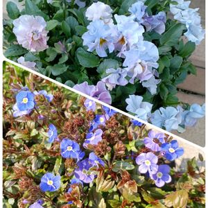 1️⃣ペチュニア真輝この夏のペチュニアはこの子にしました✨ ムラサキと緑ってカッコいいね~ 2️⃣アークトチス安くなっていたので購入。120円やったけどツボミがいっぱい🥰 これはお買い得😁 3️⃣オステオスペルマムも3割引きなので、増やすつもりなくても2個買ってしまった😓 ダメと思うけどこの花形と強さは好きですね~ 4️⃣ペチュニア細かい水玉も素敵と思っています! この春パンジーでブラック系を植えなかった反動で、ペチュニアがちょっと暗めを選んでます。よく似てる八重のペチュニアも濃い目のムラサキ😅 なんとなく春キラキラ✨️華やか花色になりすぎて😓 ちょっと可愛すぎると落ち着かないわとなったので、夏はシンプル爽やかを目指しますよ~ 5️⃣半額になっていたチューリップ中身もう少ししたらもこもこアイス🍦になるのかな?楽しみですね~ アジュガも班入りは弱いのかと冬場思いましたがしっかり咲いて増えてくれてます🥰 寄せ植えの隙間に重宝しますね~ パンジービオラもうそろそろ終わりにしたほうがいいところまで来てる。けど種採りたいから日陰に移動しないとね~ そして昨年のペチュニアがベロンベロンに伸びてるのをどうするのが正解?切っても株元かなり木質化してるけど😅 埋め戻すのか挿し木するのか悩み中💓