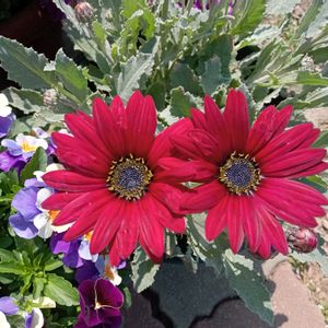 アークトチス バーガンディ ❤️ 沢山咲き出したよ✿︎✨ シルバーリーフに真紅のお花🌸 素敵だね🐾 ❤️•*¨*•.¸¸(^-^✿︎)