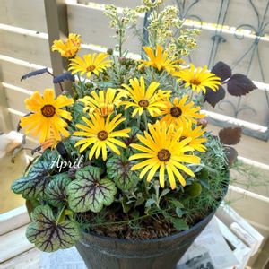昨日つくった寄せ植え。 初めて見る色のアークトチスだったのでついついお迎え☘️解体した寄せ植えのリーフ類を一緒に🌼