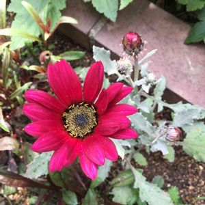 売れ残って値下がりしていたコ オレンジ色もあったけど、マリーゴールドとかぶるのでこの色にしました😉 開花時期はほぼ一年中だって😃 アークトチスは初めて育てます❗大きくなるのかな? 葉っぱの形がかわいいな💕