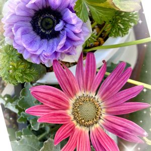 2年目のアネモネ咲きました💜 嬉しい〜♡︎(°´ ˘ `°)/✨ ⬇️はアークトチス・フェアリーウィング・ワイン🍷 天使の羽🪽✨ 夜閉じて日が当たると開くを繰り返してます🌸 高温多湿が苦手なので多分ワンシーズンですがシルバーリーフも素敵でツボミもいっぱい🌸✨ 寄せ植えにするかおひとりさまか…考え中*ˊᵕˋ)੭