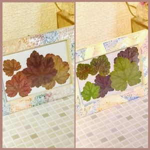 ヒューケラの葉っぱで、 押し花?イヤ押し葉?を 作ってみました🎶🎶 〝押し花シート〞使うと、 葉っぱの色も綺麗に残って いい感じに、仕上がりました ✨✨✨ 便利な物が、色々あって、 ホント、助かります🎵😆 🌧️☔️☔️🐌…🍃🍃🐌🐌…
