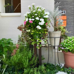6月に作ったハンギングバスケット 2ヶ月後の今の様子 ニチニチソウが伸びて 形が悪くなりましたが 長梅雨や猛暑を乗り切って まだまだ元気です☘️