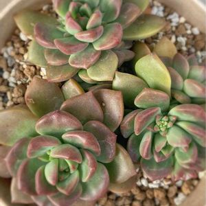 ふらり立ち寄ったDAISOさんで、 多肉アソートが入荷してました 以前入荷したてを購入した折、 土がベチャベチャでしたので 乾くまで3週間弱くらい 放置していましたら、 今度はカッチカッチに(T_T) こちらの生産者さん、 用土に木屑?を混ぜてあるので 根っこなのか? 木の繊維なのか? 分解するのに苦労した経験有り 反省を踏まえて、 今回は早速植え替え(◕દ◕) 時計回りで🕐 【エケベリア属 ヘラクレス】 Echeveria 'Heracles' 【セデベリア属 マイアレン】 Sedeveria 'Maialen' 【セダム属 コスミダトム hyb.】 Sedum cuspidatum hyb. 別名 クスピダツム hyb. 【エケベリア属 マッコス】 Echeveria 'Marcus' 別名 マルクス・マルコス アーリーデイト 【シノクラッスラ属 インディカ】 Sinocrassula indica 【セデベリア属 ローリー】 Sedeveria 'Rolly' 【エケベリア属 ヌダ(ヌーダ)】 Echeveria 'Nuda' 中国名 蜡牡丹 インディカは購入しなかったので 海外のサイトから画像を拝借 ☆Source☆ https://cedarcreekfarmhouse.com/products/sinocrassula-indica-1